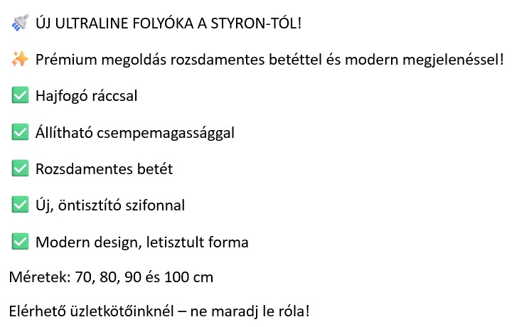 Kezdőlap » Zuhanyfolyókák » ULTRALINE Zuhanyfolyóka egyenes, 900 mm-es rozsdamentes ráccsal, állítható csempe magassággal